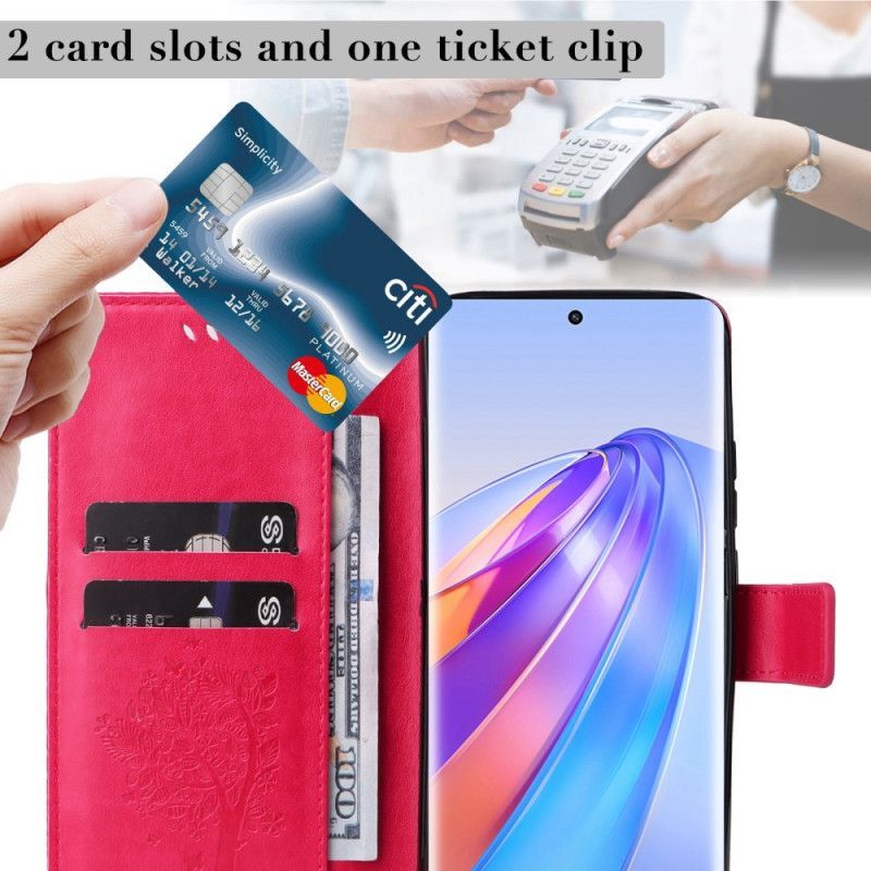 Flipové Pouzdro Na Honor Magic 5 Lite Na Lana Strom A Strappy Cat