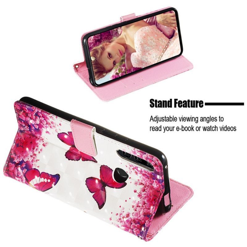 Flipové Pouzdro Na Huawei P Smart Z / Čest 9x Červeným Motýlkům Na Šňůrce