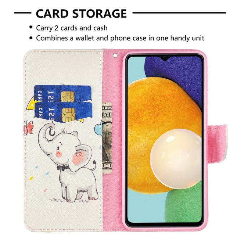 Pouzdro Baby Elephant chrání váš Samsung Galaxy A13 5G osobním, efektivním a zábavným způsobem a zároveň slouží jako peněženka.
