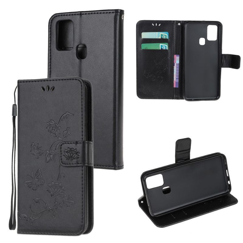 Flipové Pouzdro Samsung Galaxy M21 Motýli A Řemínkové Květiny