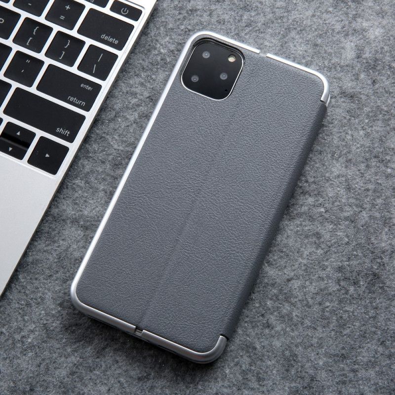 Kožené Pouzdro Folio Iphone 11 Pro Max Umělá Kůže S Kovovými Okraji