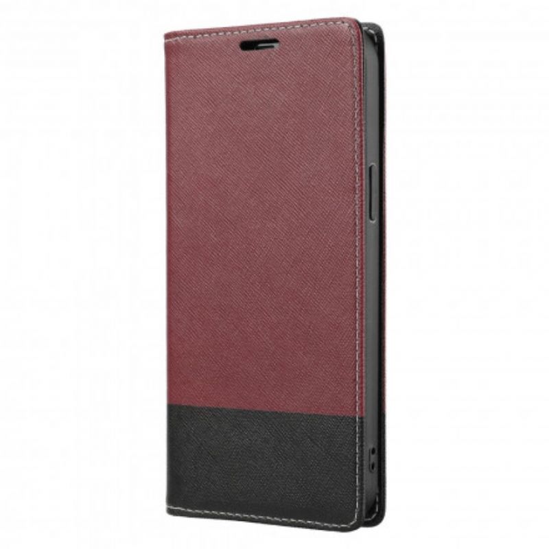Kožené Pouzdro Folio Iphone 13 Texturovaná Dvoubarevná Umělá Kůže