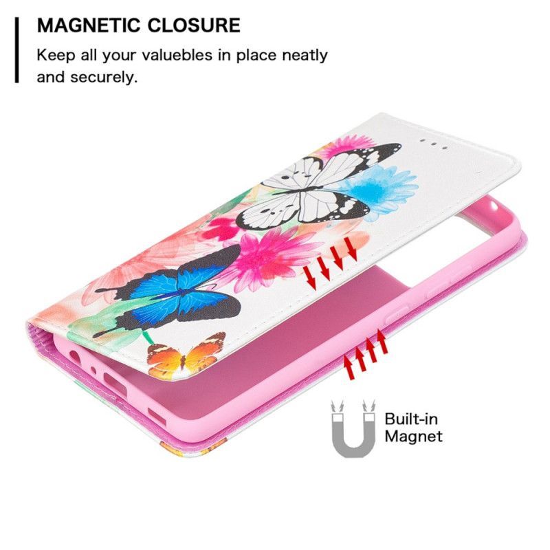 Kožené Pouzdro Folio Na Samsung Galaxy A52 4g / A52 5g Barevní Motýli
