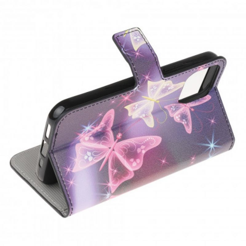 Kožené Pouzdro Motorola Edge 20 Lite Motýli A Květiny