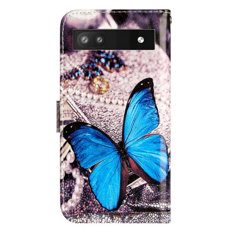 Kožené Pouzdro Na Google Pixel 7A Na Lana Modrý Motýl S Popruhem