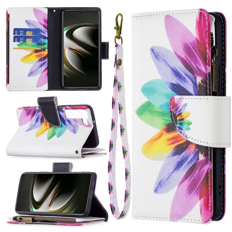 Kožené Pouzdro Na Samsung Galaxy S22 5G Květinová Kapsa Na Zip