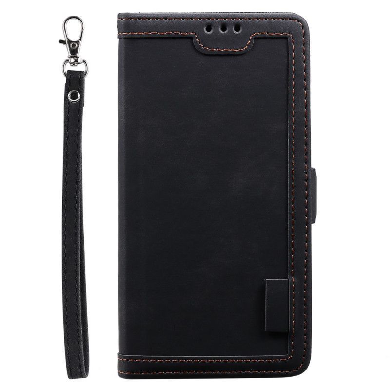 Kožené Pouzdro Na Samsung Galaxy S22 Ultra 5G Dvoubarevné Kontury Zesílené Umělou Kůží