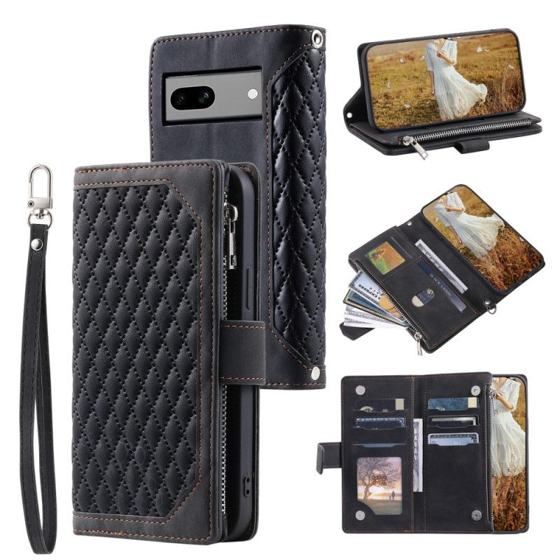Kožený Kryt Google Pixel 9 Prošívaná Peněženka S Popruhem