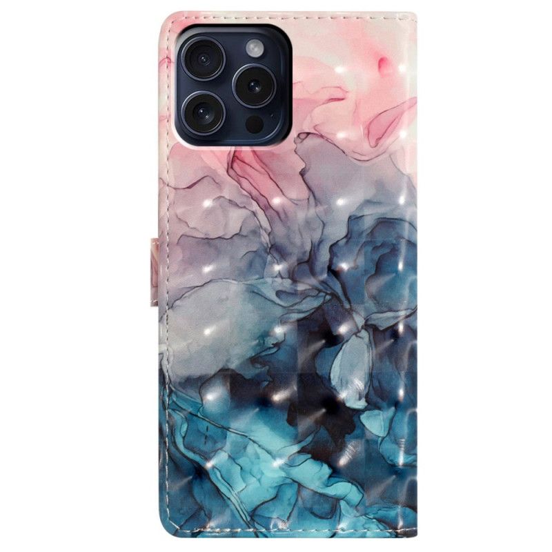 Kožený Kryt iPhone 16 Pro Růžový A Modrý Mramor S Popruhem