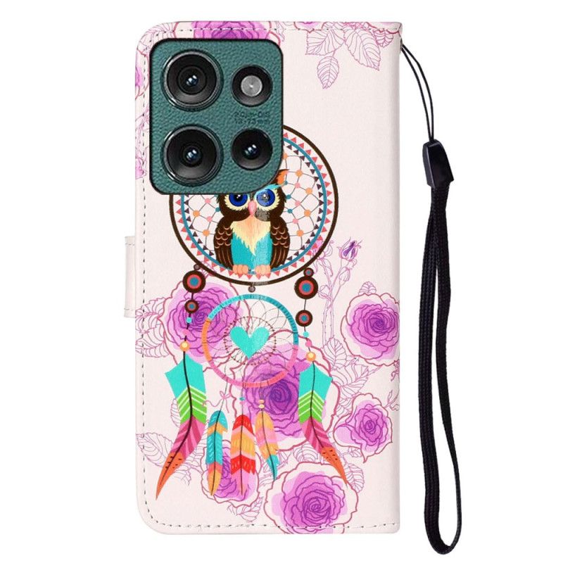 Kožený Kryt Na Motorola Edge 50 Sova A Lapač Snů