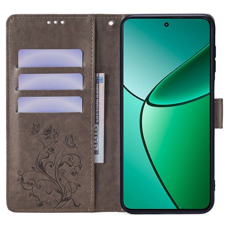 Kožený Kryt Na Realme 12 Plus 5g Květiny A Motýli S Popruhem