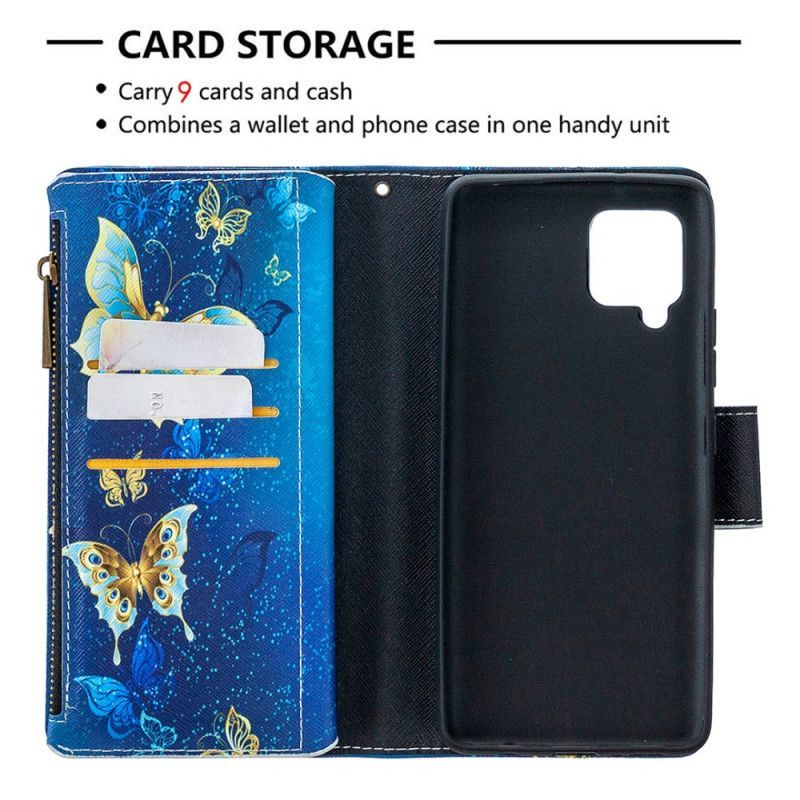 Kožený Kryt Na Samsung Galaxy A42 5g Motýlková Kapsa Na Zip