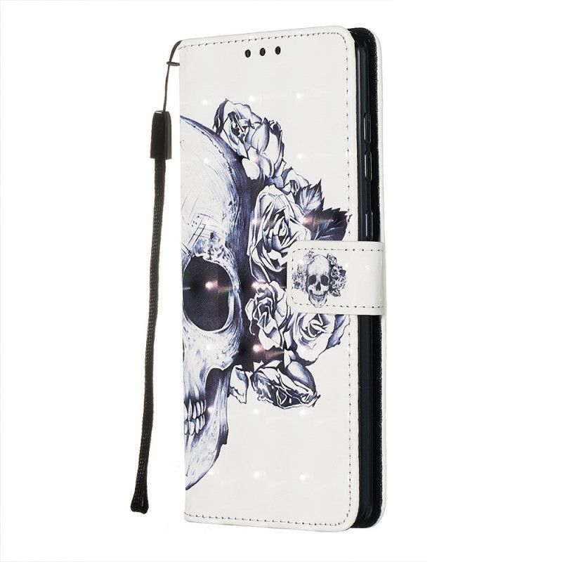 Kožený Kryt Na Samsung Galaxy A71 Květinová Lebka