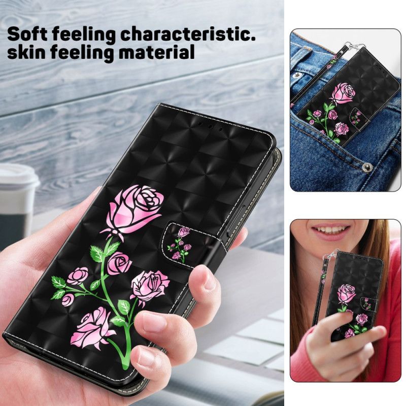 Kožený Kryt Na Samsung Galaxy S24 Plus 5g Růžové Květy S Páskem
