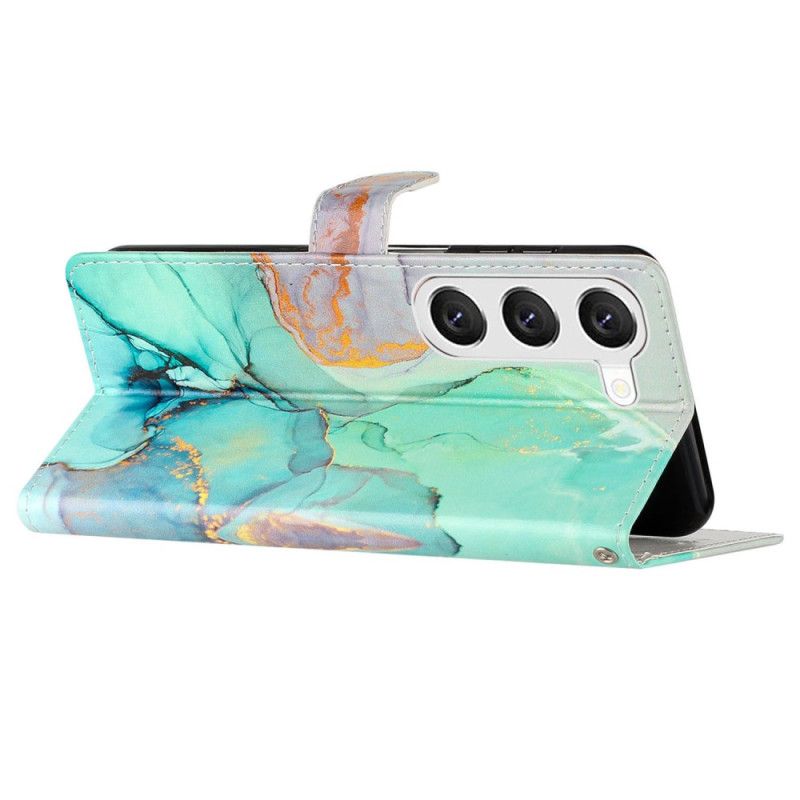 Kožený Kryt Na Samsung Galaxy S24 Plus 5g Zelený Mramor Se Šňůrkou