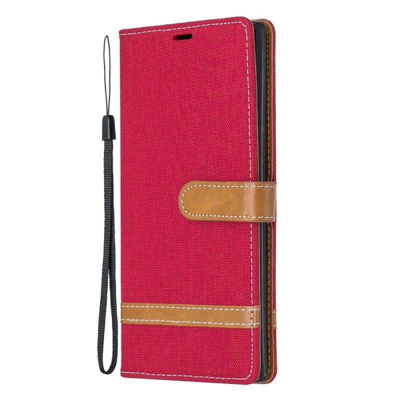 Kožený Kryt Samsung Galaxy Note 10 Plus Řemínek S Látkovým A Koženým Efektem