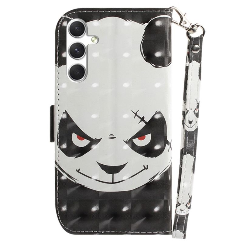 Kožený Kryt Samsung Galaxy S24 Plus 5g Rozzlobená Panda S Popruhem