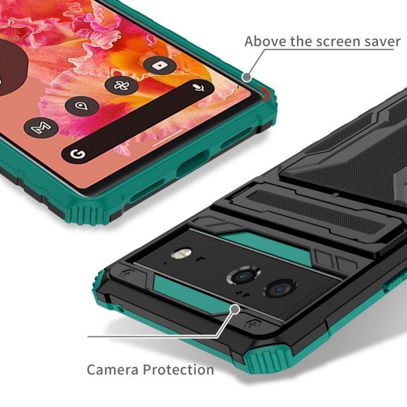 Objevte toto hybridní pouzdro pro svůj Google Pixel 6. které je vybaveno držákem na karty se zipem a podporou.