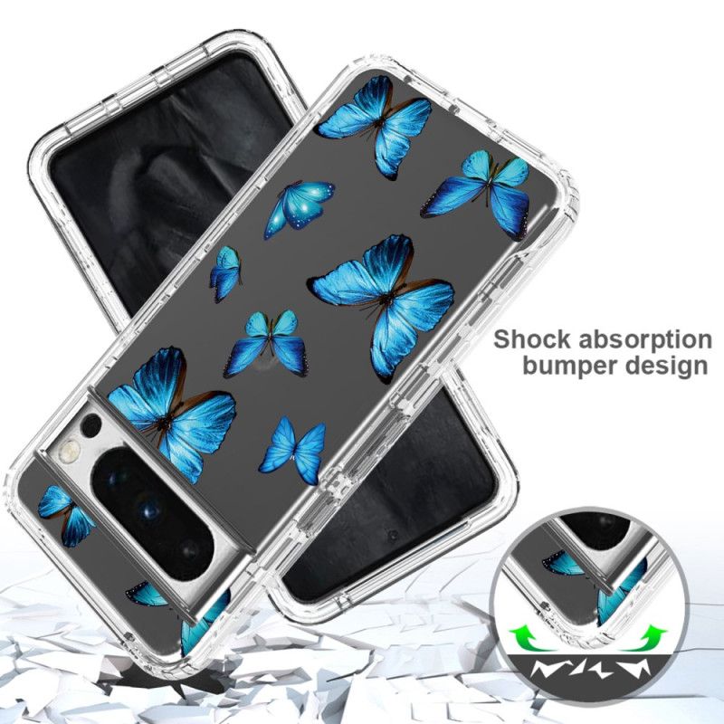 Toto Nádherné Vyztužené Pouzdro Zdobené Modrými Motýlky Bude Zobrazovat Vzor Pouze Na Vašem Google Pixel 8 Pro.