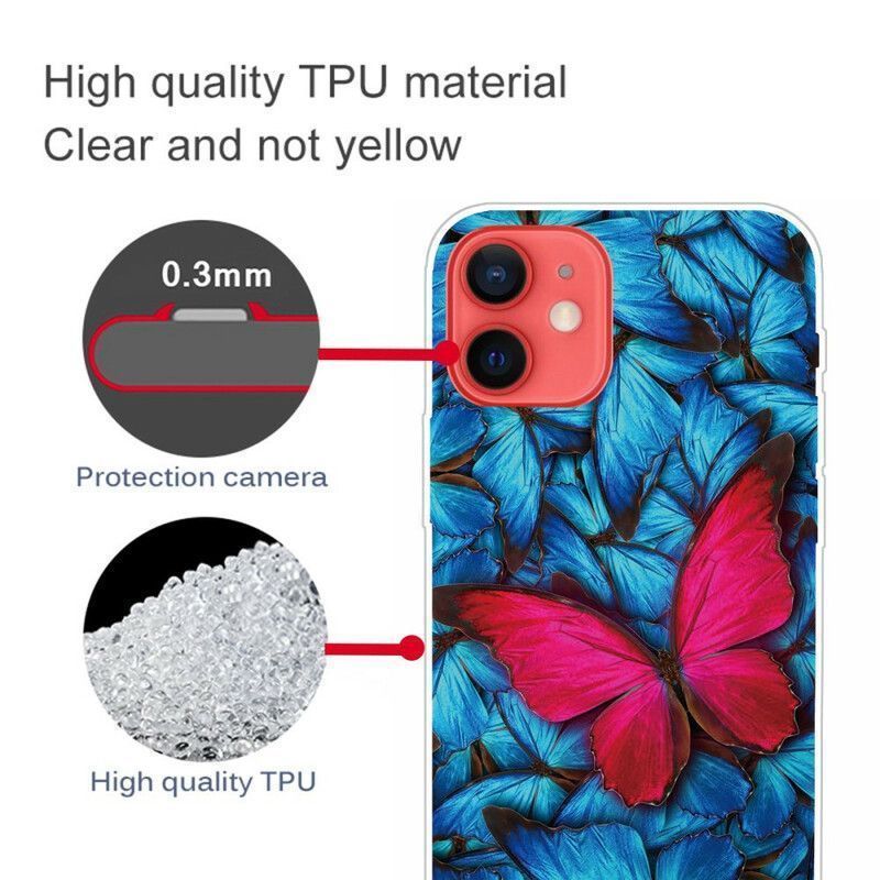 Váš iPhone 13 Mini je dokonale chráněn tímto pružným silikonem a ozdoben motýly.
