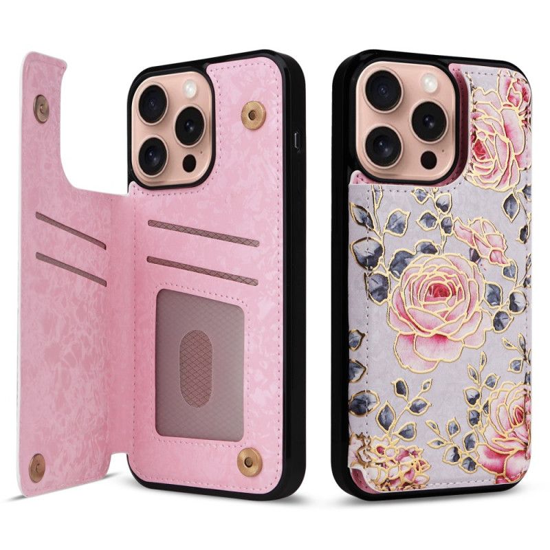 Kryt iPhone 16 Pro Držák Karty A Květinová Ochrana Rfid