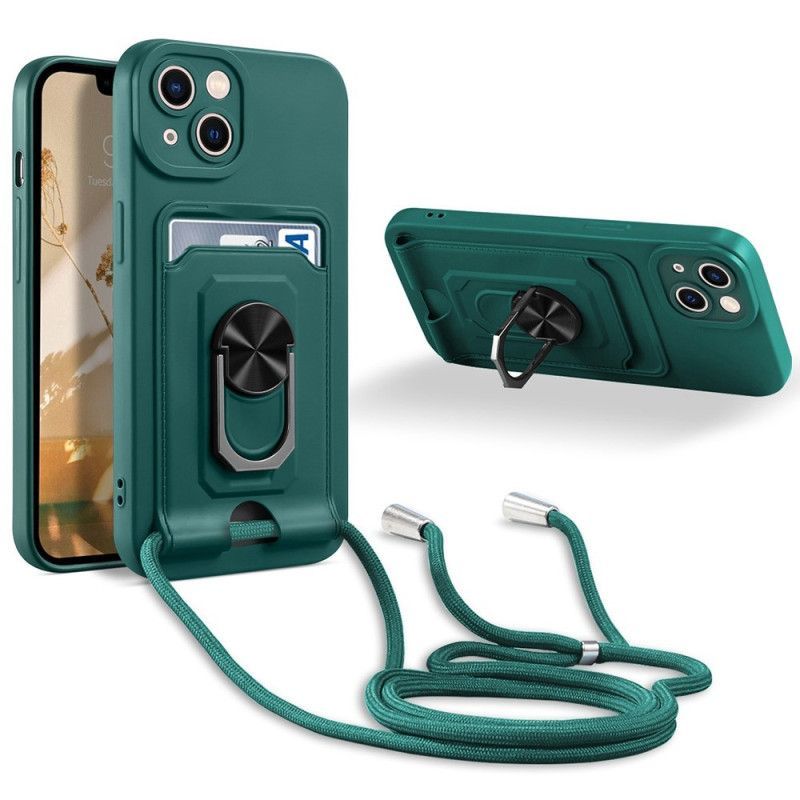 Kryt Na iPhone 14 Plus Na Lana Stahovací Šňůrka S Držákem Karty A Podpůrným Kroužkem