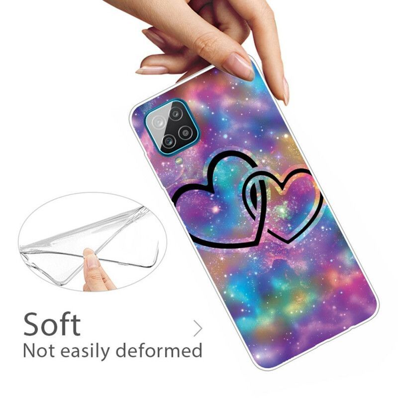 To Je Ideální Pro Zajištění Zadní Strany, Okrajů A Čočky Galaxy A12 / M12.- Flexibilní Silikonové Pouzdro / Design Srdce