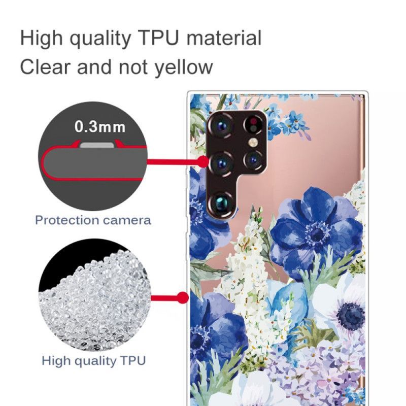 Průhledné Pouzdro Watercolor Blue Flowers Optimálně A Elegantně Zajistí Váš Samsung Galaxy S22 Ultra 5G Na Denní Bázi.