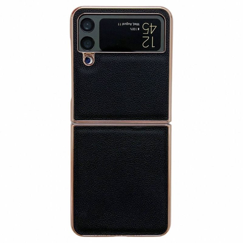 Kryt Na Samsung Galaxy Z Flip 4 Flipové Pouzdro Zlaté Okraje Z Pravé Kůže