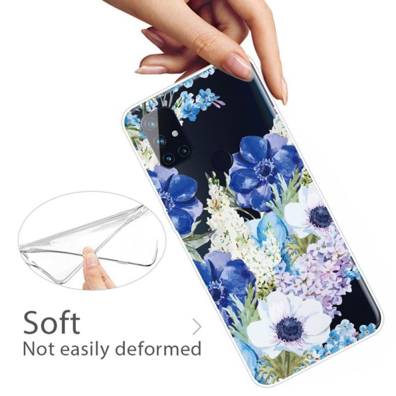Kryt Oneplus Nord N100 Průhledné Akvarelové Modré Květy