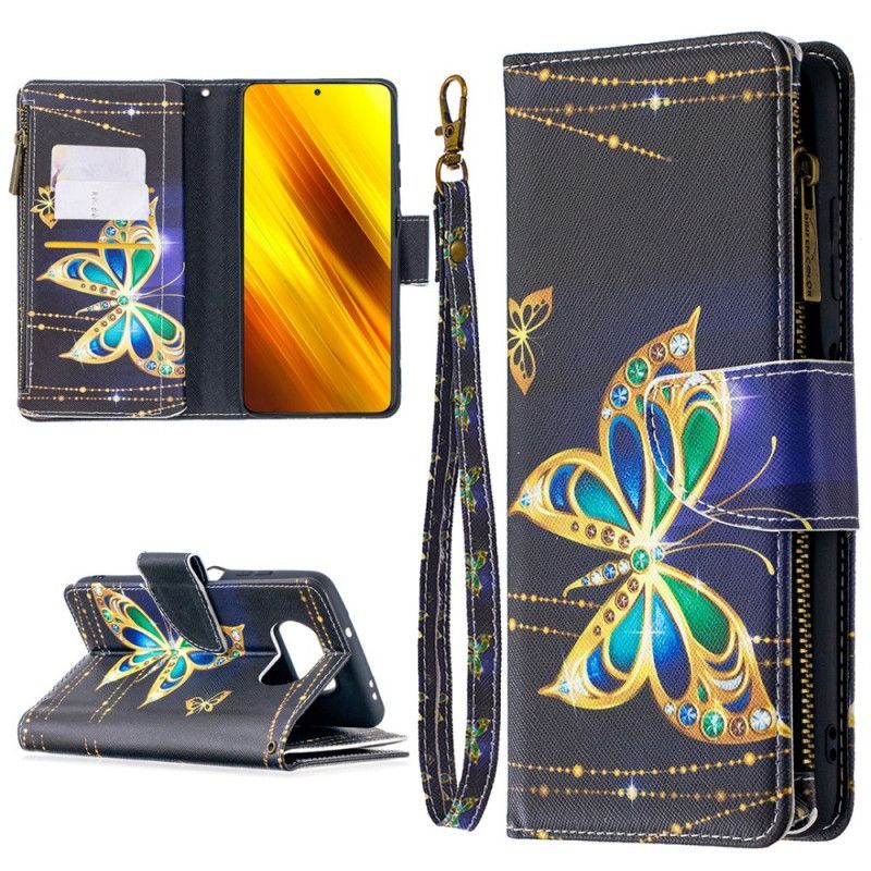 Kryt Xiaomi Kožené Pouzdro Poco X3 Motýlková Kapsa Na Zip