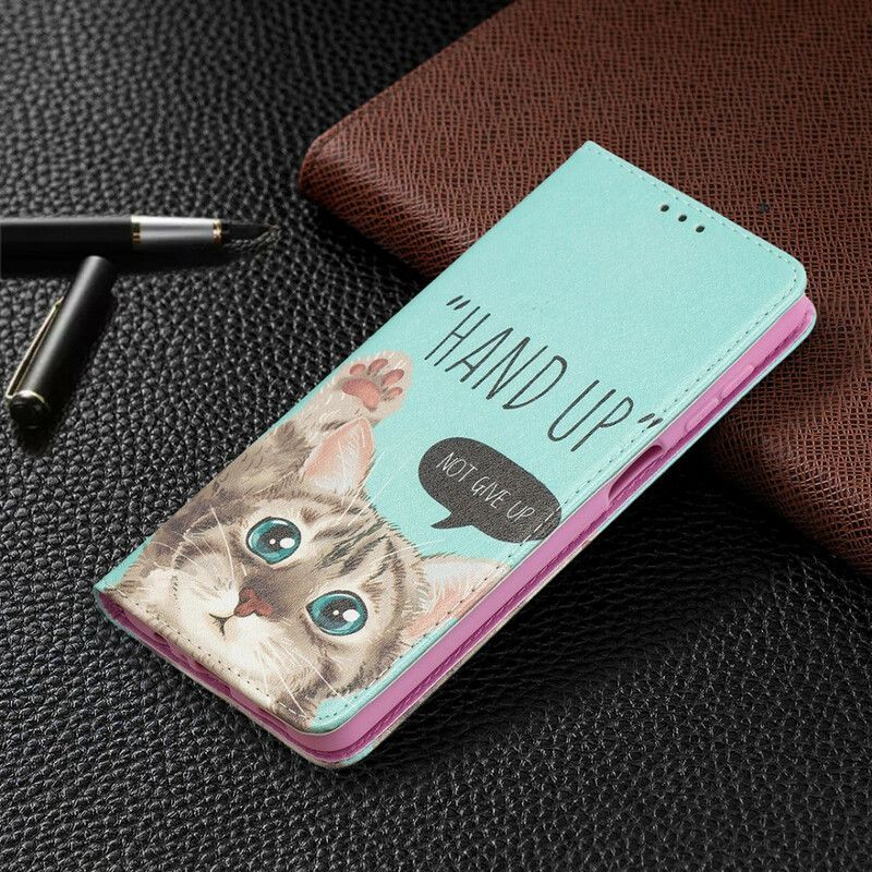 Váš Samsung Galaxy A12 / M12 Je Dokonale Bezpečný S Tímto Flipovým Krytem Zdobeným Kočkou Hand Up.