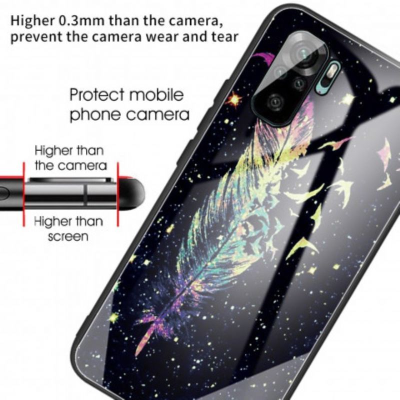 Zvětšete Svůj Xiaomi Redmi Note 10/Note 10S/Poco M5S Tímto Pouzdrem Z Tvrzeného Skla (Zadní Strana) A Silikonu (Hrany) Zdobeným Peřím.