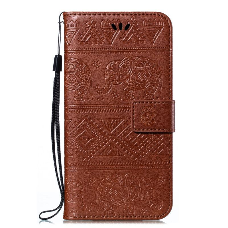 Peněženková Pouzdra Samsung Galaxy A20s Kmenoví Sloni Z Umělé Kůže