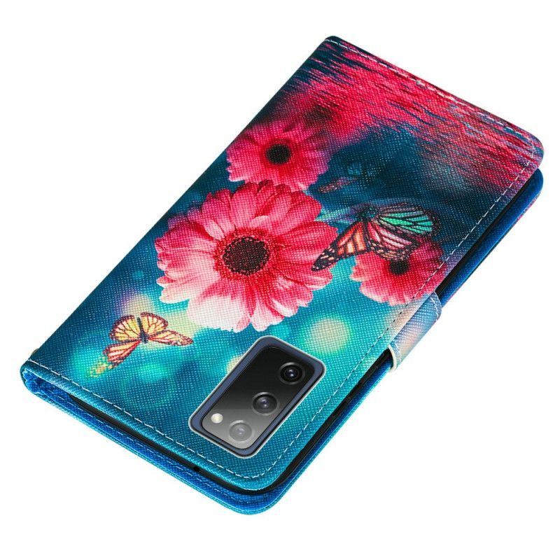 Peněženková Pouzdra Samsung Galaxy S20 Fe Květina A Motýli